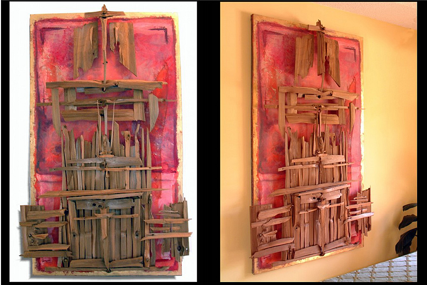 “Empire’s End” 2002 (7’H x 5’W x 8"D - cedar; mixed media support)