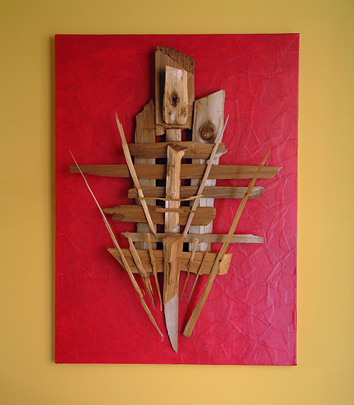 "Strike" 2003 (38½”H x 28”W x 8”D - wood; mixed media support)